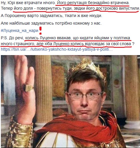 Есть и такой тревожный для Юрия Витальевича и его соратников симптом. Луценко перестал быть священной коровой, которой многое прощалось.