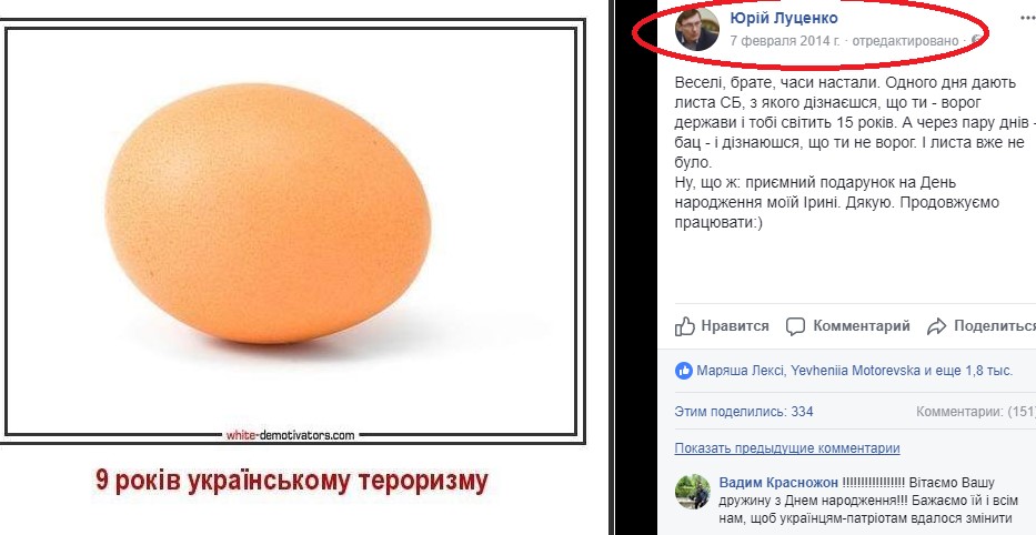 А ведь в период бурной оппозиционной деятельности Юрий Луценко пел по-другому. Будучи министром МВД, при котором яйцо свалило Януковича, заявил, что милиция охранять кандидата в Президенты не станет: ведь яйца кидать в политика – это нормально.