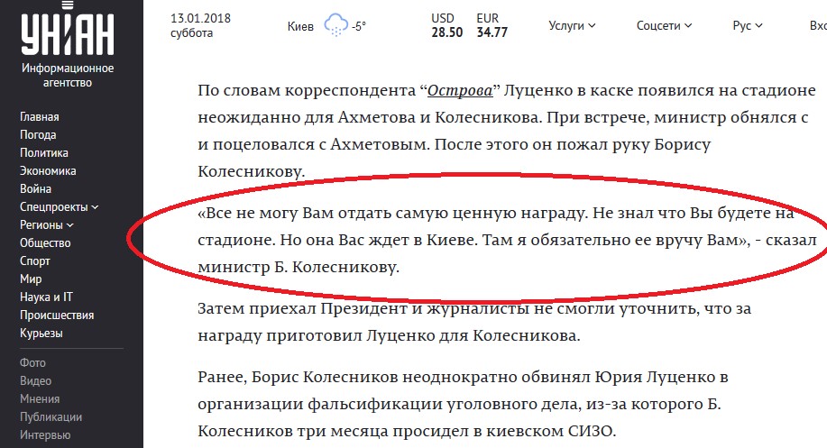 После этого довольные фанаты Ахметова долго шутили о том, что Президент подрабатывает у «донецкого короля» шофером (знай, мол, наших). Остальные переваривали новость о поцелуях министра МВД и таинственной награде, которую он обещал Колесникову, стараясь угодить.