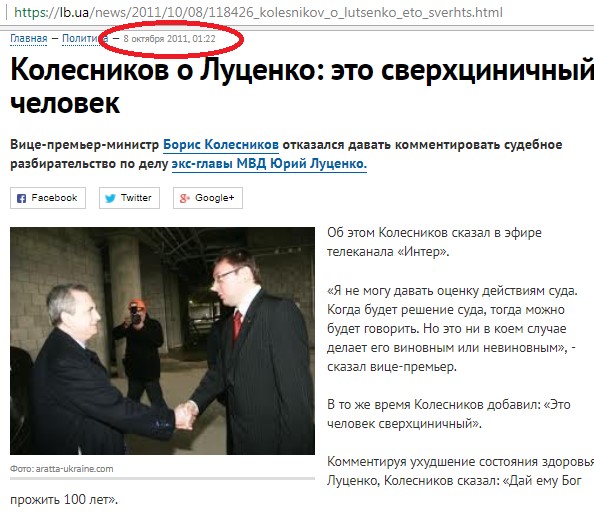 На фото – В тот памятный день объятий Луценко не удалось задобрить Колесникова. Отомстив Пенчуку, он выжидал момент, чтобы отомстить Луценко. В 2010ом случай представился.