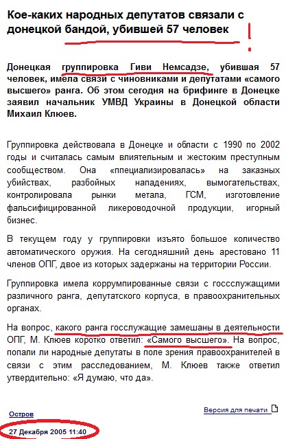 Автору, как бывшему жителю Донецка, не понаслышке известно, что такое донецкая мафия. Обещание свернуть шею организованной преступности с акцентом на региональный клан помогло Луценко стать главой МВД в 2005ом. И поэтому начать хочется именно с ОПГ Гиви Немсадзе.