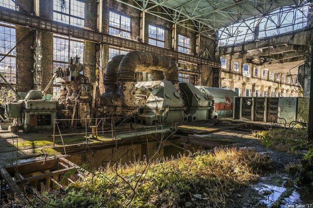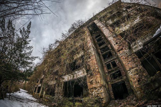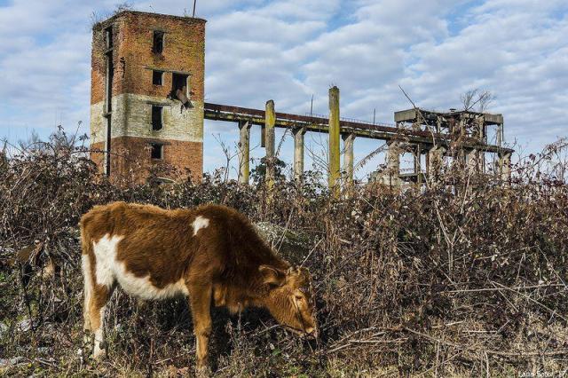 На фото видны объекты абхазской промышленности и инфраструктуры, находящиеся на данный момент в разрушенном состоянии.