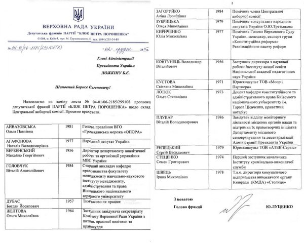 Завдяки запиту чернигівського юриста та правозахисника Юрія Власенко, який 25 грудня звернувся до Адміністрації Президента, ми можемо проаналізувати відскановані копії пропозицій, що були подані депутатськими фракціями і групами стосовно призначення нових членів ЦВК.