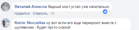 "Бедный мост, устал уже капитально", "Ну вот если его еще перекроют вместе с Шулявским - будет просто сказка!", "Мосты в Киеве решили декоммунизироваться самостоятельно, чего ждать", - отметили юзеры.