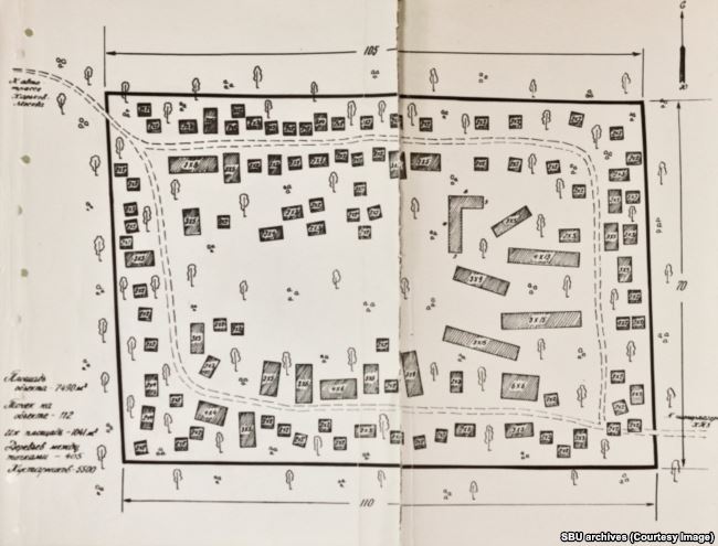 "Территория спецобъекта составляет 7490 квадратных метров. На ней выявлено 112 мест захоронения разных размеров – от 4 до 60 кв. метров каждое, в которых погребено около 13 тысяч трупов. Площадь всех мест захоронения равна 1041 метру. Между местами погребения растет более 400 крупных деревьев лиственных пород и по всей площади – кустарник.