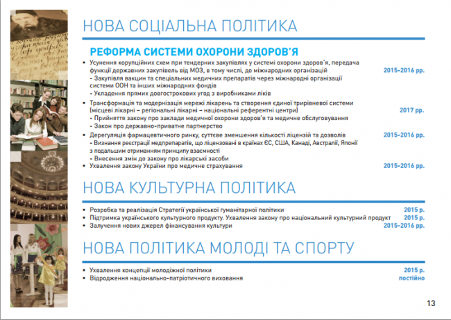 Да и в целом в тексте очень много деклараций и мало конкретики. Именно поэтому программа правительства имеет мало общего с реформами. Мы все надеялись, что уже перед началом работы Кабмин представит план конкретных действий. Вместо него украинцы увидели разве что анонс будущей программы, который заодно выполнял функцию пиар-документа.