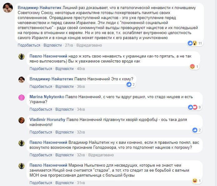 "Мы думали, что если мы не будем евреям вспоминать, что основная верхушка, основная часть организаторов Голодомора - это представители еврейского народа..." - начала Ницой.