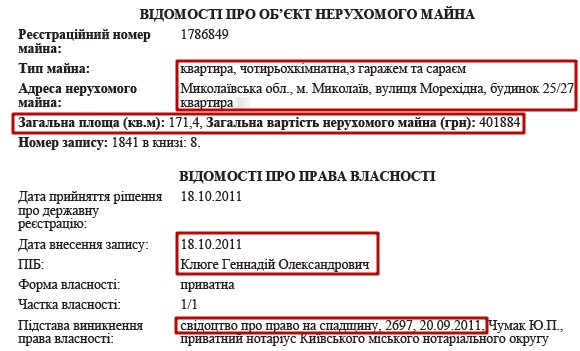 Ще одну квартиру Геннадій Олександрович отримав у спадщину. Вона розміщена у Миколаєві, а її площа – 171 кв. м.