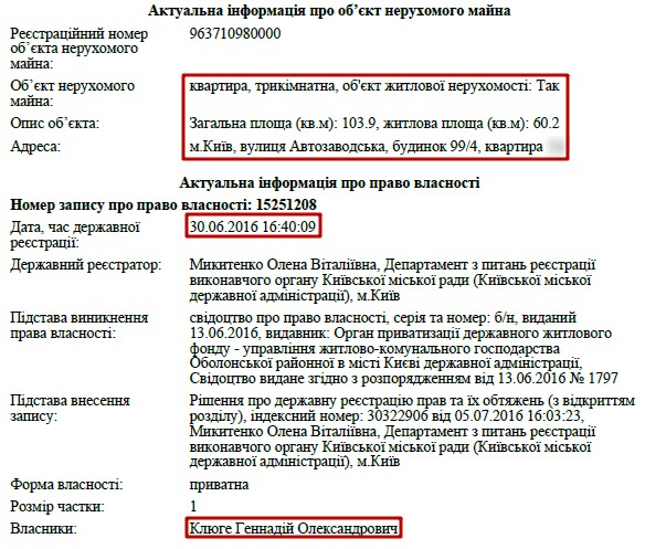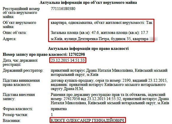 Як бачимо, питань до Олександра Геннадійовича Клюге і так задосить. Зокрема, чому Олександр Геннадійович не задекларував квартиру дружини та звідки у нього кошти на купівлю власного вартісного майна при не надто високих доходах?