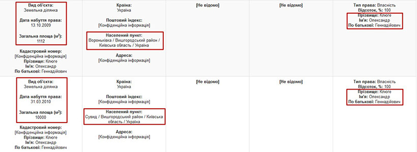 Також прокурор Олександр Геннадійович Клюге задекларував 2 земельні ділянки у Київській області, місце розташування яких, на жаль, ідентифікувати не вдалося.