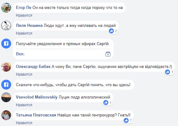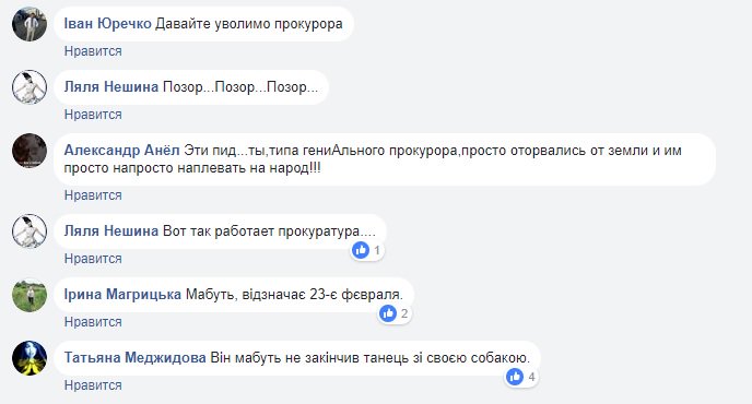 Украинцы в сети были разгневаны таким отношением Луценко к гражданам. В комментариях полагали что генпрокурор отмечает советский праздник «23 февраля», возможно снова танцует с псом или уже улетел на курорт. В сети также требовали уволить Луценко за такое отношение к работе.