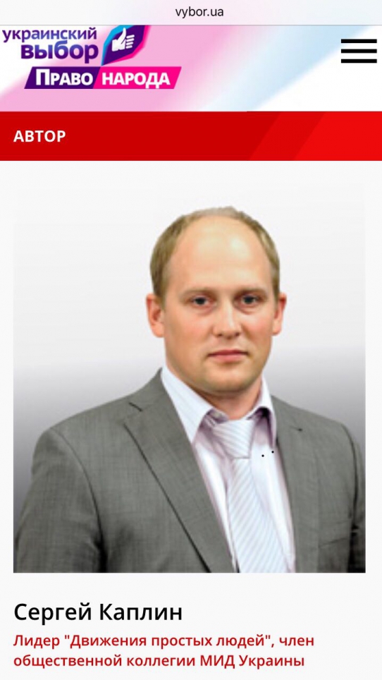 Сегодня Каплин, по крайней мере, публично, старается держаться подальше от УВ. Но, как известно, «рукописи не горят» — на сайте «Украинского выбора» Каплин и сегодня фигурирует как участник проекта.