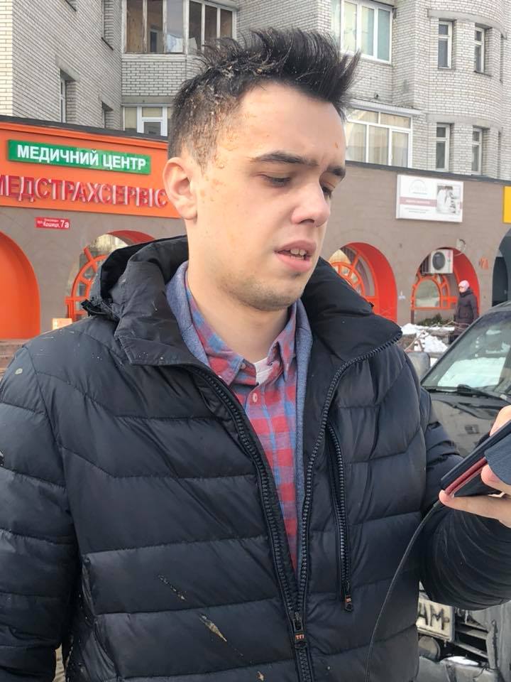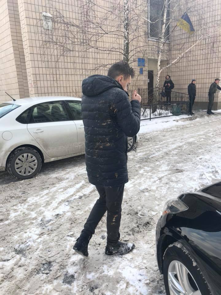 На видео и фото видно, что яйца летели в спину Олешко, у них оказалась испачкана куртка и штаны. «Та я знаю, сейчас поедем в магазин переоденемся», — спокойно ответил автору видео Олешко.