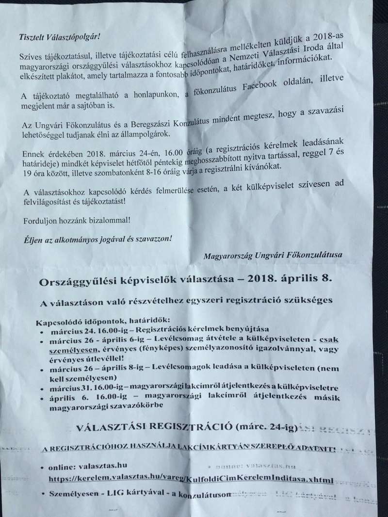 Очевидно оценив возрастные показатели потенциального электората, ведь не все представители «украинского-венгерского гражданства» является ценителями соцсетей, венгерские власти решили подстраховаться и провести информационную кампанию с применением старого и проверенного годами способа — распространение листовок.
