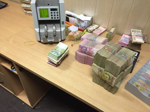 Во время обысков у них нашли более 14 миллионов гривен, около 2 миллионов долларов, 50 000 евро, более 1200000 рублей.