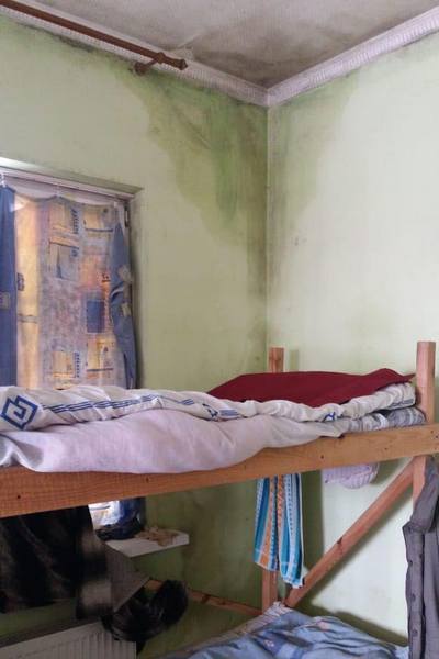 На трех этажах здания разместили спальни с двухъярусными кроватями, кухню и несколько санузлов. На некоторых кроватях лежали грязные матрасы и одеяла. Некоторые из них вообще были без постельного белья. Помещение плохо отапливались. В отдельных комнатах с потолка стекала вода, а стены покрылись плесенью. Все окна были закрыты и без ручек для открывания, а межкомнатные двери оборудованы запорными устройствами и замками.