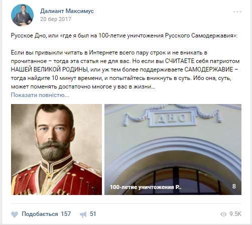 Его страница в соцсетях до сих пор активна. Судя по постам "Вконтакте", Борозенный является ярым монархистом.