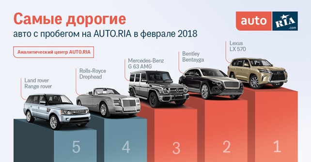 Интересно, что автомобили премиум-класса в феврале заметно подскочили в цене. Если еще в прошлом месяце лидером был Bentley Bentayga, который продавец оценил в 8,5 млн грн, то уже в феврале этот автомобиль едва попал бы в тройку. Общая стоимость автомобилей из ТОП-5 самых дорогих автопоследнего месяца зимы составила 44,4 млн грн. Месяц назад эта сумма не дотягивала и до 30 млн грн.