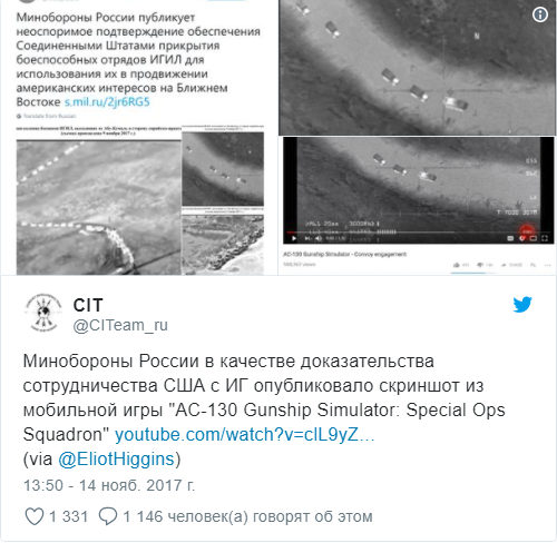 В ноябре 2017 года, чтобы доказать факт сотрудничества США с запрещенной на территории России террористической группировкой «Исламское государство», Минобороны опубликовало скриншот из игры «AC-130 Gunship Simulator: Special Ops Squadron».