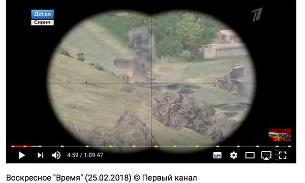 В конце февраля в одном из выпусков передачи «Воскресное время» на Первом канале в сюжете, посвященном Дню защитника Отечества и гибели в Сирии Александра Пушкаренко, показали снайперский прицел.