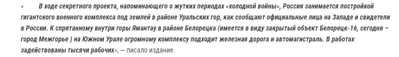 Неофициально секретный объект под горным хребтом называют «Бункером Путина».
