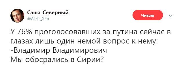 – Владимир Владимирович. Мы обос*ались в Сирии?" – отметил Саша_Северный.