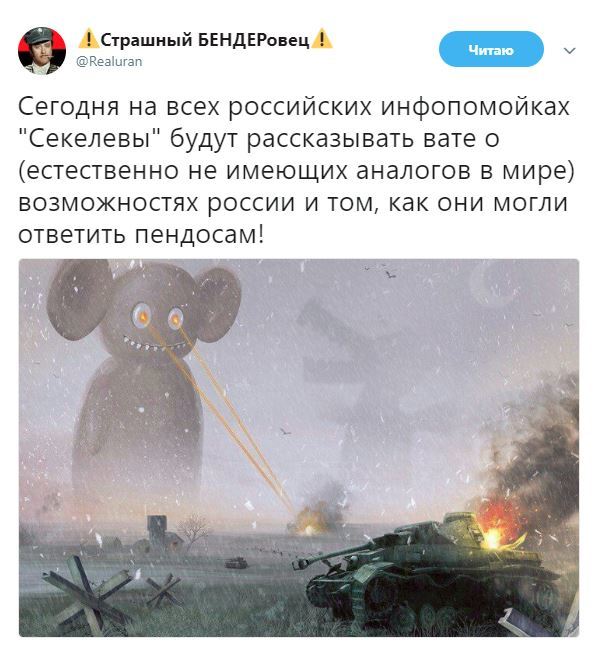 "Сегодня на всех российских инфопомойках "Секелевы" будут рассказывать вате о (естественно не имеющих аналогов в мире) возможностях России и том, как они могли ответить пендосам!" – заявил блогер Страшный БЕНДЕРовец.
