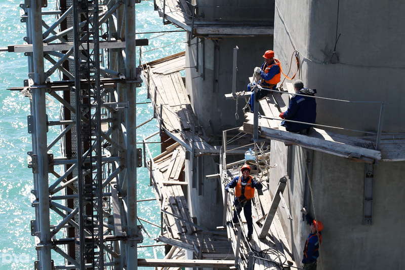 Автодорожная часть Крымского моста будет введена в эксплуатацию во второй половине мая. При этом автомобильный подход к мосту со стороны Тамани готов на 96%. Однако степень готовности в аннексированном Крыму оккупанты не сообщают.