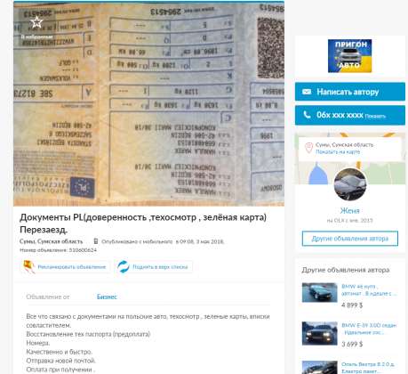 То, что продажа поддельных польских техосмотров и доверенностей давно стала налаженным бизнесом, свидетельствуют объявления на том же OLX. Меньше, чем за 1000 грн там можно купить полный пакет документов, который, как уверяют продавцы «самые настоящие».