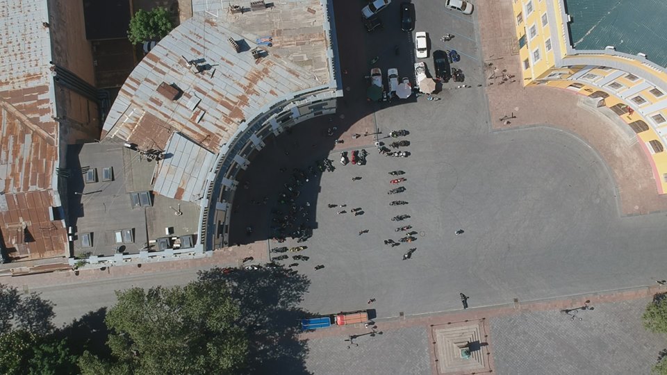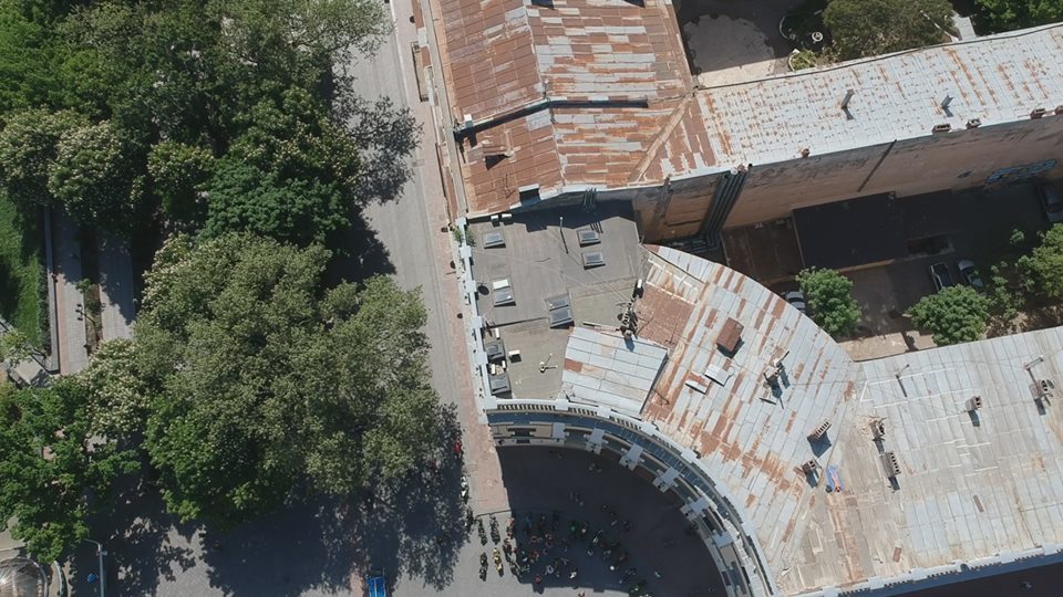 В центре Одессы на крыше циркульного здания мужчина, загоравший голышом, случайно попал в кадр.