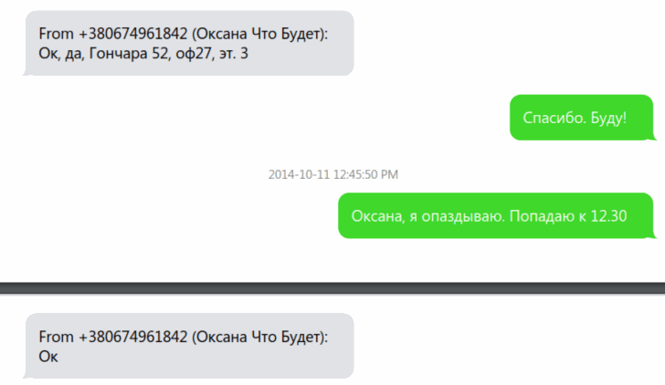 Их первая встреча состоялась 11 октября 2014 года, в офисе «Оксана Что Будет» по улице Гончара, 52; 3 этаж, комната 27