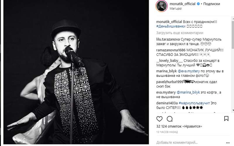 Дмитрий MONATIK поздравил поклонников. Правда, они сомневаются, что это вышиванка, но попытка удалась.