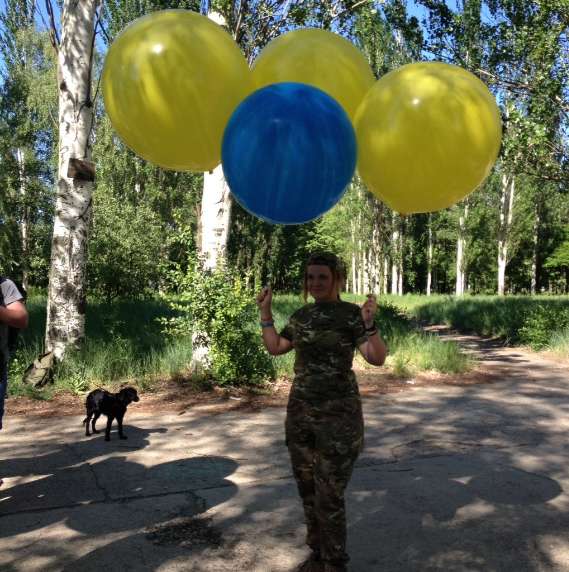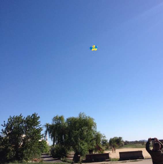 Активисты запустили в небо воздушные шары цветов украинского флага, которые ветер должен отнести в сторону оккупированной Горловки, как напоминание террористам о том, на территории какой страны они находятся.