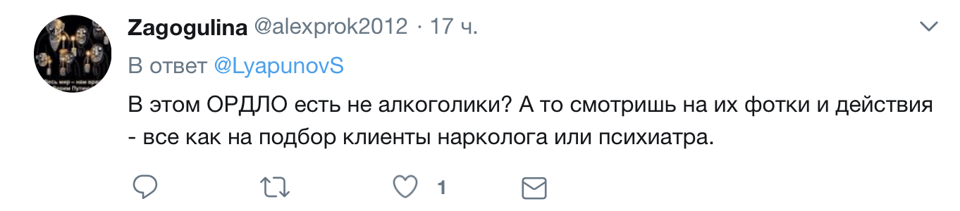 "В этом ОРДЛО есть не алкоголики? А то смотришь на их фотки и действия - все как на подбор клиенты нарколога или психиатра", - пишут пользователи.