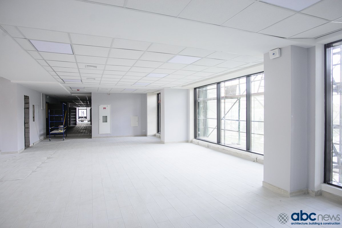 Для начала значительно усилили бетонный каркас пострадавшего после пожара здания, отремонтировали, утеплили и остеклили фасад.