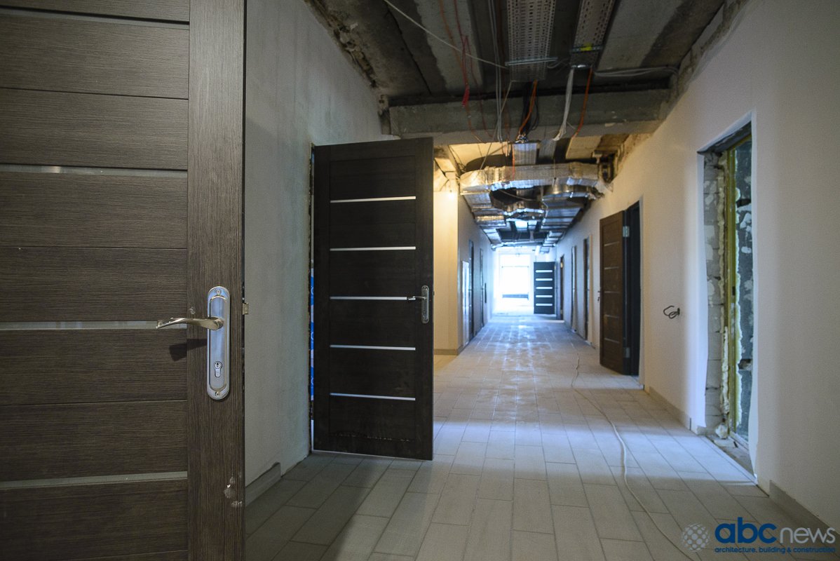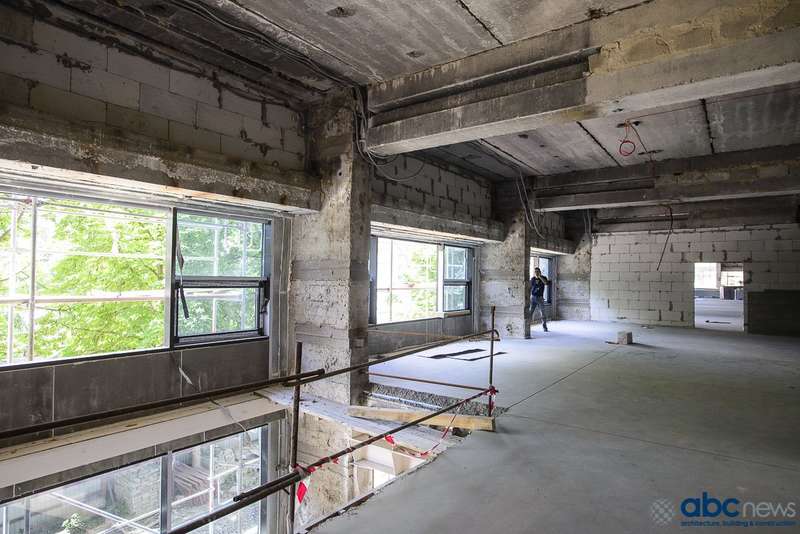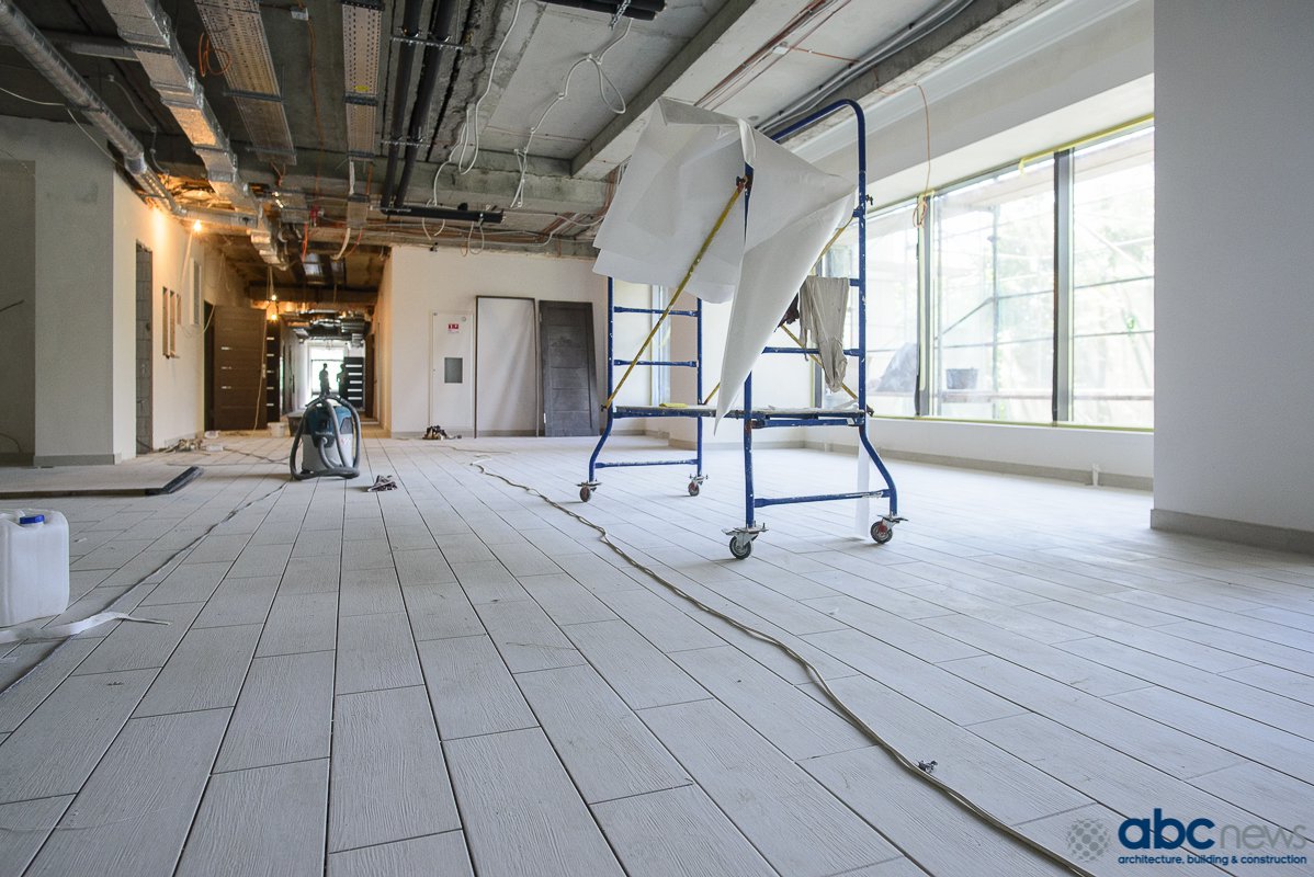 Внутренние работы в Доме профсоюзов проводят, начиная с верхних этажей (с девятого до третьего), первый этаж пока используют как склад стройматериалов.