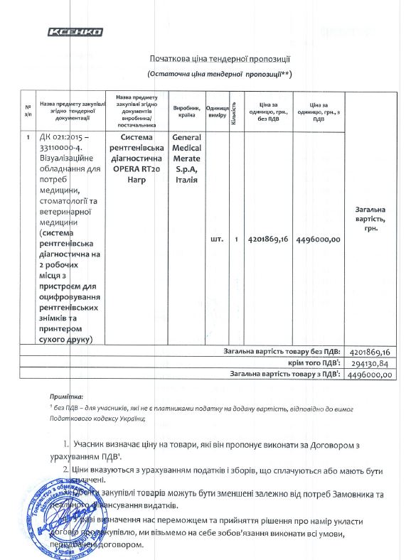 Ось ціна за якою придбали вказану апаратуру за часів пана Овчара для потреб нашої області