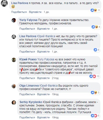"Вы родили хоть одного профессионала? Лорак не считается", "А поконкретнее, фамилии кандидатур? Если нет, то это гнилой п*здеж зрадо*ба и "советского офицера", который давал присягу несуществующей стране и др*чит на ее могилу", - упрекнули его подписчики.