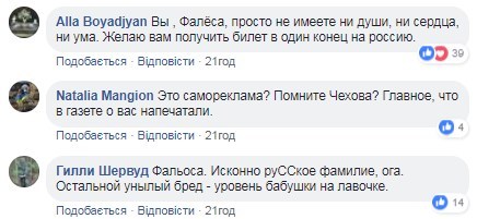 Эмоциональный пост Фалесы не остался незамеченным. Пользователи сети напомнили продюсеру о десятках тысяч погибших на востоке Украины от российского оружия, а также пожелали ему остаться в РФ навсегда.