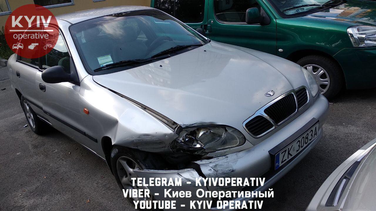 В Киеве водитель Daewoo врезался в Lexus, который был припаркован с нарушением правил дорожного движения.