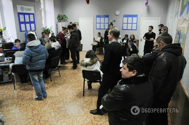 "Обозреватель" также посмотрел, как идет процесс работы в другом отделении ГМС. В помещении Отдела централизованного оформления документов №3 ГУГМС, на улице Богдана Хмельницкого, 10, несколько десятков человек. Темпы обслуживания клиентов более чем скромные - чуть больше тридцати человек в день. Принимает документы только один инспектор. Почему так мало - непонятно. Наверняка в Госмиграционной службе понимали, что в первые дни будет аншлаг, могли бы и увеличить количество работников.