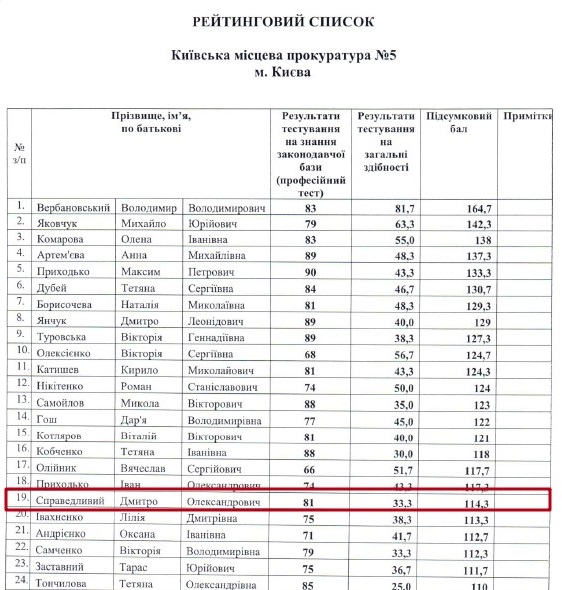 Интересно, что на конкурсе на это место прокурор Дмитрий Справедливый занял лишь 19 место.