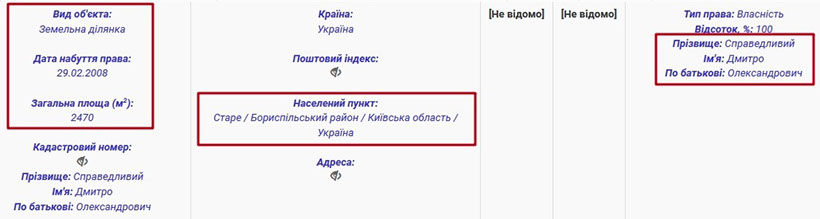Также в декларации чиновника указан земельный участок в Бориспольском районе Киевской области. Правда, идентифицировать его местонахождение не удалось.