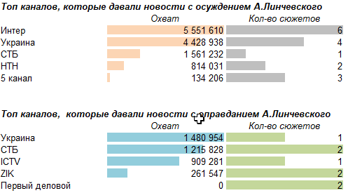 Топовые каналы продолжали давать негативные сюжеты даже после появления записи, из которой становилось ясно, что слова Линчевского были вырваны из контекста. Некоторые каналы, такие как ТРК Украина, сменили тональность только после заседания комиссии, на котором выяснилось, насколько было перекручено предварительное толкование фразы замминистра.