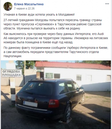В группах, посвященных поиску угнанных машин, их хозяева часто отмечают, что в последний раз автомобили светились на дорогах, ведущих к Одессе. Это — одна из современных особенностей украинскиого бизнеса по краже транспортных средств. Причина в близости границы с Молдовой и Приднестровьем, где угнанные авто исчезают без следа.