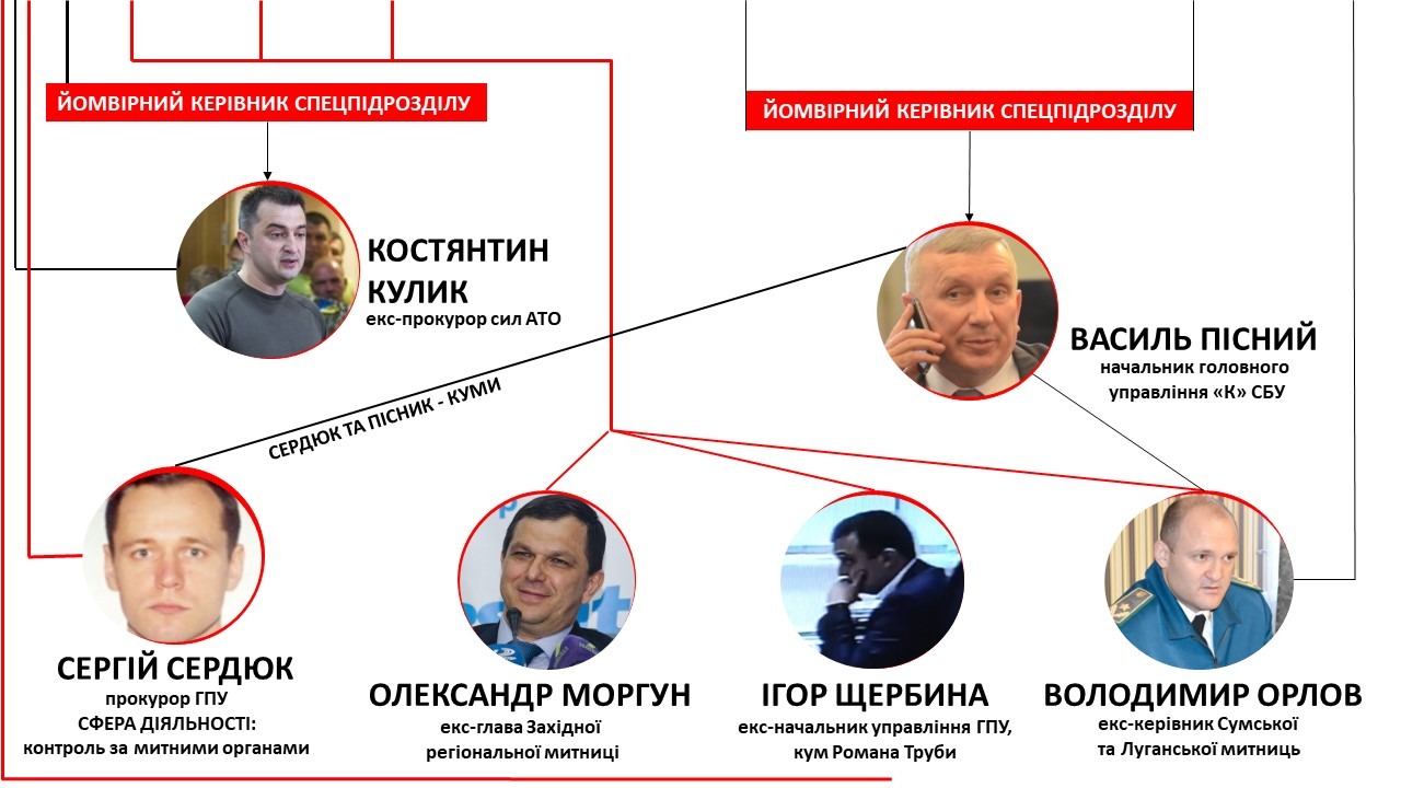 Прокурор відділу нагляду за митними органами ДФС Сергій Седюк. Він кум Василя Пісного. Відомий у чималих схемах. Найгучніша – коли він заплатив 1 мільйон доларів аби врегулювати проблеми своєї фіктивної фірми ТОВ “Меллвил”, яка попалася на незаконному розмитненні 61 контейнера. Ці гроші пішли керівництву прокуратури і ДФС України.