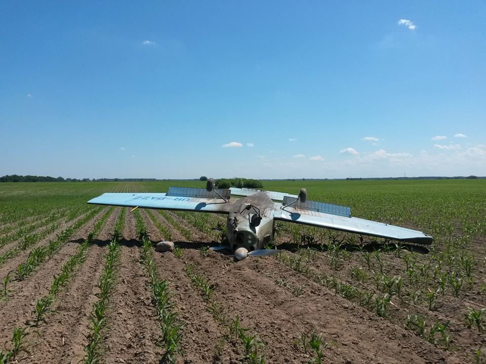 "После того как передняя стойка коснулась земли, самолет проехал пару метров по грядке молодой кукурузы, затем споткнулся, хвост самолета оторвался от земли, самолет перевернулся через капот и упал на крышу", - рассказала Доценко.