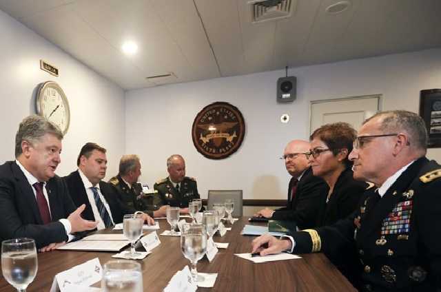 Порошенко подчеркнул, что Украина проводит реформы, усиливая свою обороноспособность, и реформирует сектор безопасности, поскольку стратегической целью страны является вступление в НАТО. Глава государства поблагодарил США за помощь Украине.