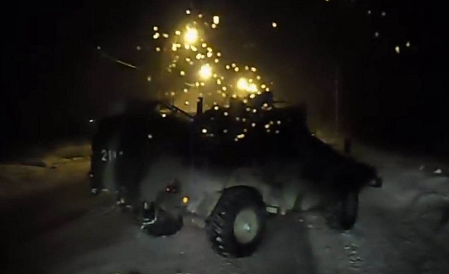 Далее на ночном видео наемники "Вагнера" проезжают мимо модифицированного бронеавтомобиля "Выстрел", который используется исключительно российскими пограничниками. Машина имеет бортовой номер 211. Она была неоднократно сфотографирована в Украине во время боев за Дебальцево.