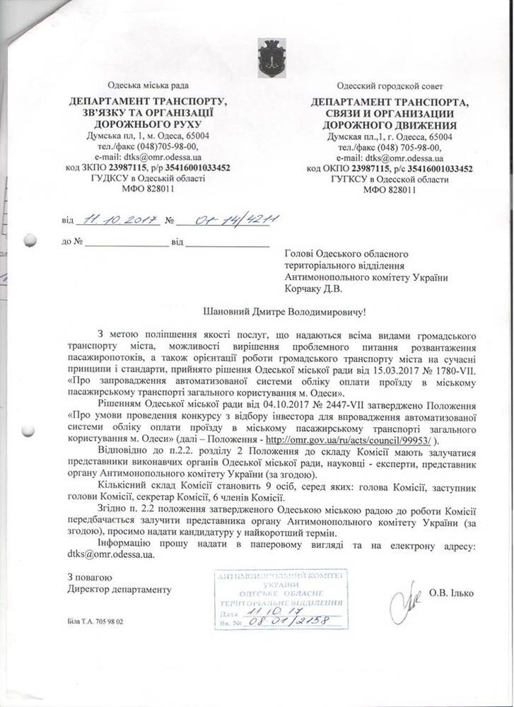 Глава АМКУ в Одессе сыграл на руку афере Труханова с «электронным билетом»